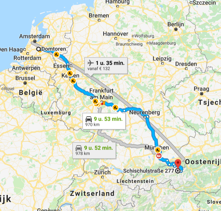 Vanaf Amsterdam kunt u ook met het vliegtuig gaan naar Saalbach. De reis is rechtstreeks en duurt 1,35 uur. Een retour kost € 102,00 p.p.