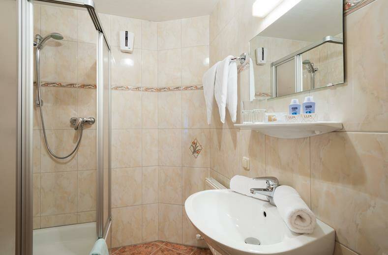douche, toilet en een föhn.